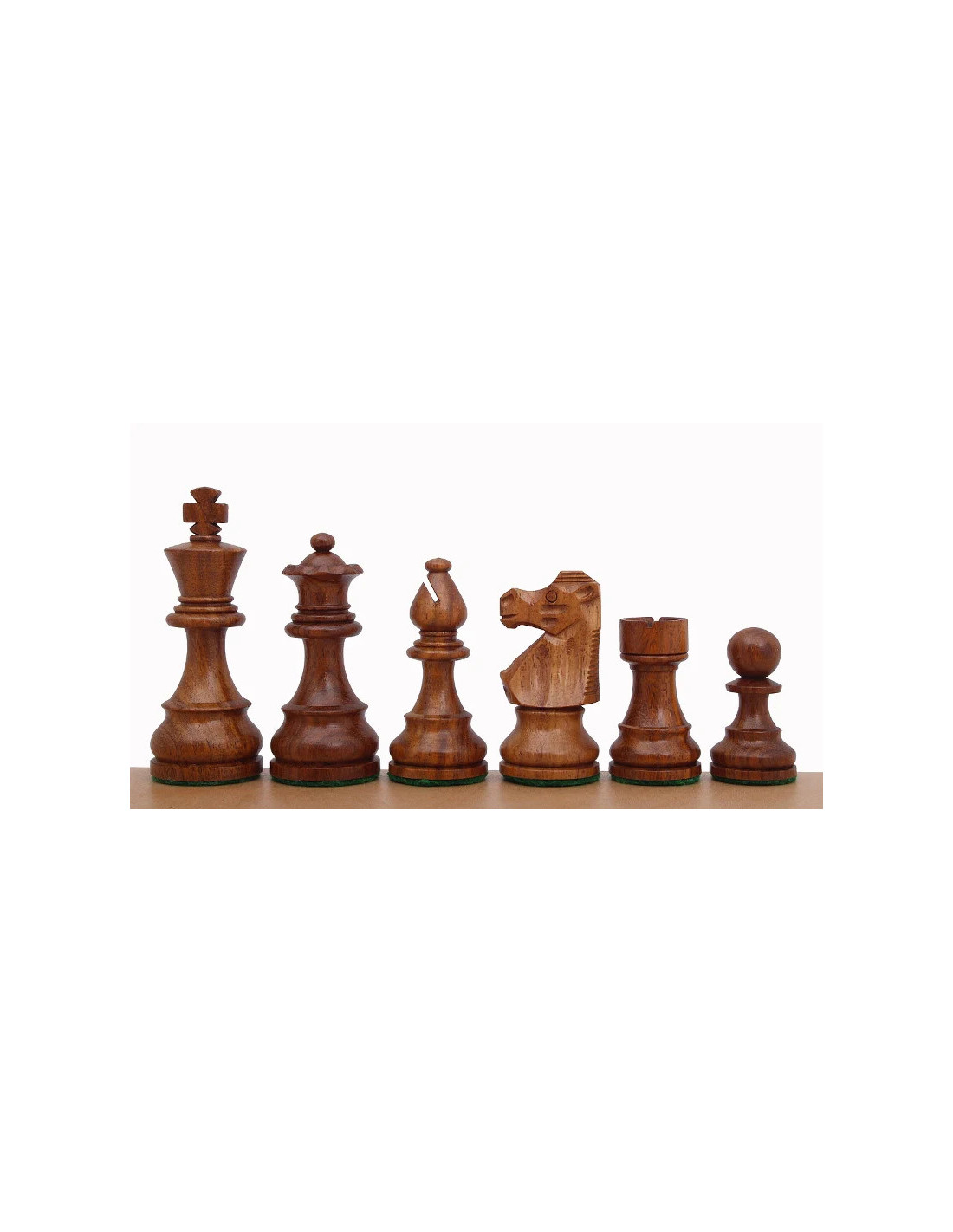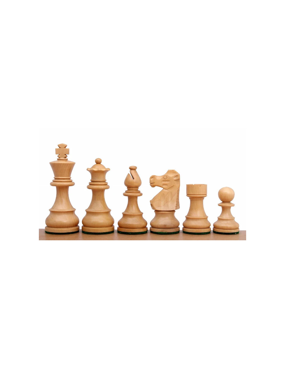 Plomadas y con doble dama. El modelo French Staunton es una variedad simple pero elegante de las populares piezas de ajedrez Staunton. Pulidas y plomadas, todas las piezas están hechas a mano por artesanos del ajedrez. Su aspecto, especialmente la superficie pulida, los hace similares a los modelos mucho más costosos de piezas de ajedrez. La silueta robusta y sólida del caballo es muy característica para este modelo en particular.