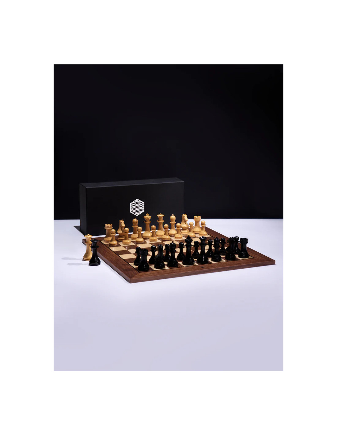 El tablero está hecho de nogal y combina perfectamente con las piezas.
