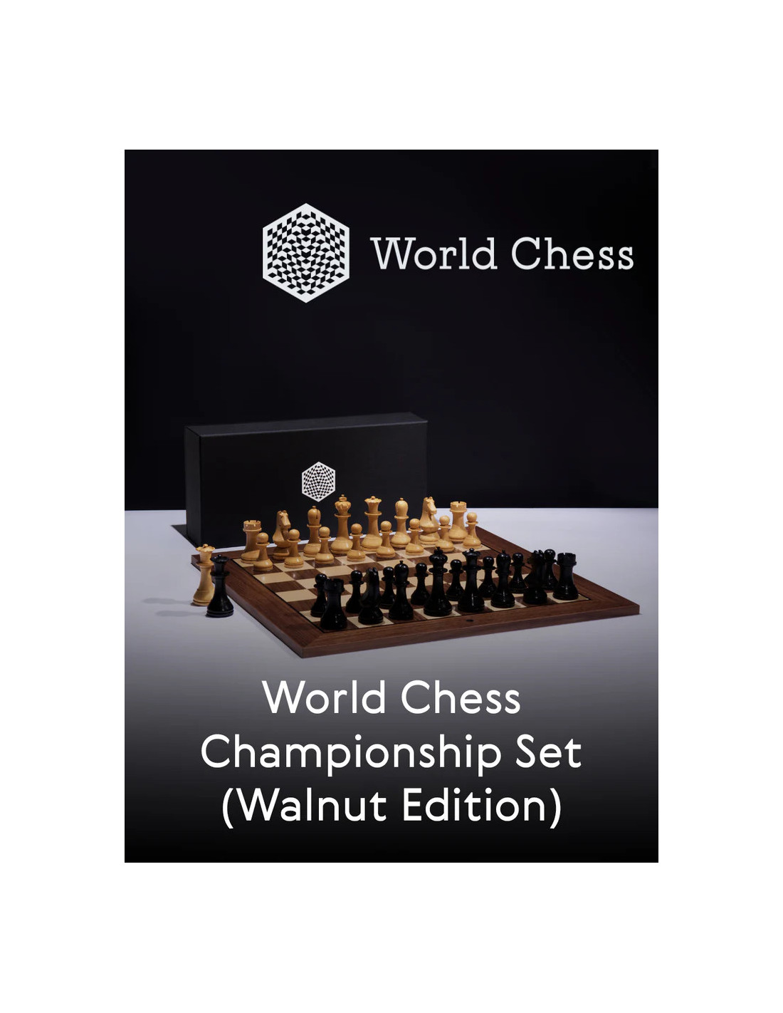 El icónico conjunto oficial del Campeonato Mundial de Ajedrez aprobado por la FIDE para los eventos de élite y utilizado exclusivamente en los partidos y eventos del Campeonato Mundial de Ajedrez. El tablero de este juego está hecho de nogal.